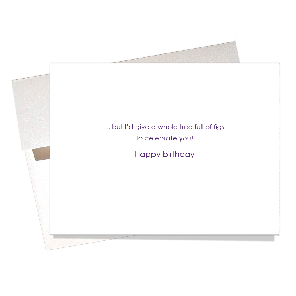 “Give a Fig” Birthday Card comes on high quality textured card stock. To send your greeting card in style, we include an elegant iridescent envelope.